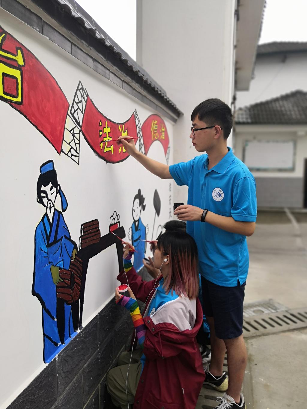 图为法治宣讲团成员在进行墙绘 通讯员 何海鹰 摄