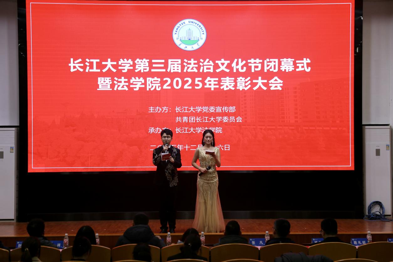 (通讯员文/李玉豪 图/何梦秋 杨翔茹 杨欣瑶 黄淇琪)“法治不是课本上的冰冷法条,是三年里我们用脚步丈量的责任,用热爱坚守的信仰!”2025 年 12 月 26 日晚,beat365官网中文东校区 12 教 405 报告厅内掌声雷动,第三届法治文化节闭幕式暨beats365 2025 年表彰大会正式启幕。党委宣传部副部长汤慧珍、校团委副书记信晓阳与beats365全体师生齐聚一堂,共同见证这场青春与法治交融的盛会,大会由周清鄂、袁野联袂主持。