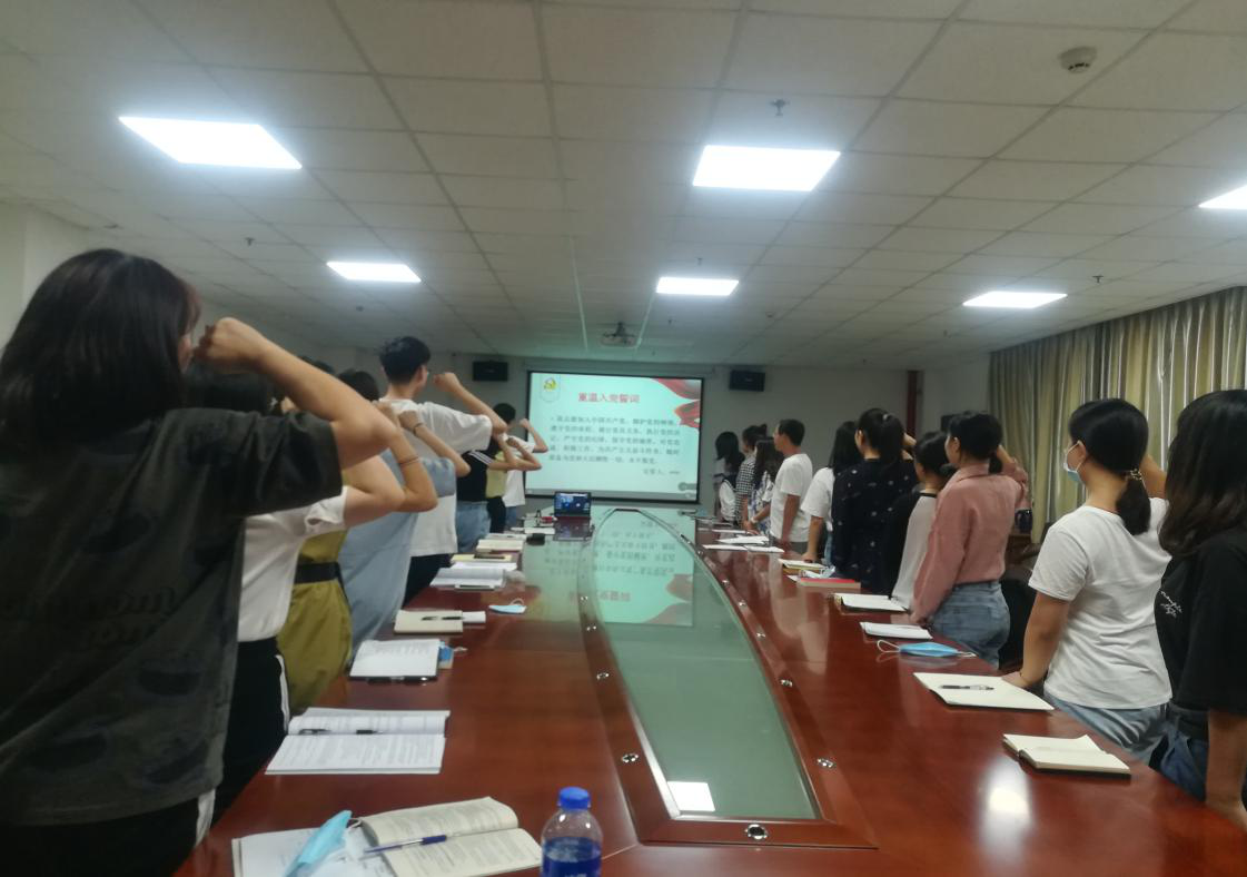 此次活动分为五个环节。第一个环节,由肖明媚同志带领大家重温入党誓词,牢记初心与使命。第二个环节,分别由方润华、田昕宇、汪文杰等几位同志带领大家学习了党章第二章摘录、习近平总书记在纪念中国人民抗日战争暨世界反法西斯战争胜利75周年座谈会上的讲话、习近平总书记在十九届中央政治局第二十一次集体学习时的讲话精神、beat365官网中文2020年暑期研讨会会议精神、《关于做好疫情防控宣传教育工作的通知》等内容。第三个环节,欢迎新同志的加入,包括两位新进辅导员老师及以李思怡同志为代表的7位新党员,随后所有老党员也做了自我介绍并分享了自己的抗疫故事,加深了党员之间的了解,便于今后支部活动的顺利进行。第四个环节,开展“全国抗击新冠疫情表彰大会观后感”的主题探讨,魏林、李银辉等同志结合自身实践发表了深刻感悟。第五个环节,公司党委副书记胡红霞做总结发言,她肯定了同志们在抗疫中的积极表现,指出了作为一名党员应该时刻牢记自身的责任与担当,并号召党员同志们勇担责任,不忘初心,不负使命。最后,盛老师、周老师对分别对支部的组织建设提出了一些具体的要求与建议。