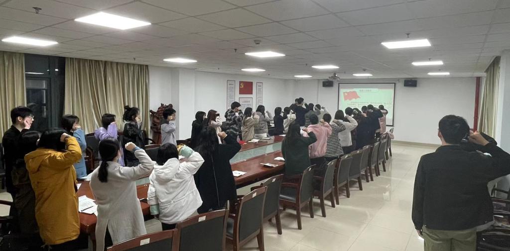 在3月主题党日学习活动中,首先由杜雅雯同志带领全体党员重温入党誓词,提醒所有党员同志不忘初心,牢记使命,砥砺前行。之后大家集体诵读了《党章》第六章,党的各级领导干部必须坚定信念、为民服务、勤政务实、敢于担当、清正廉洁。