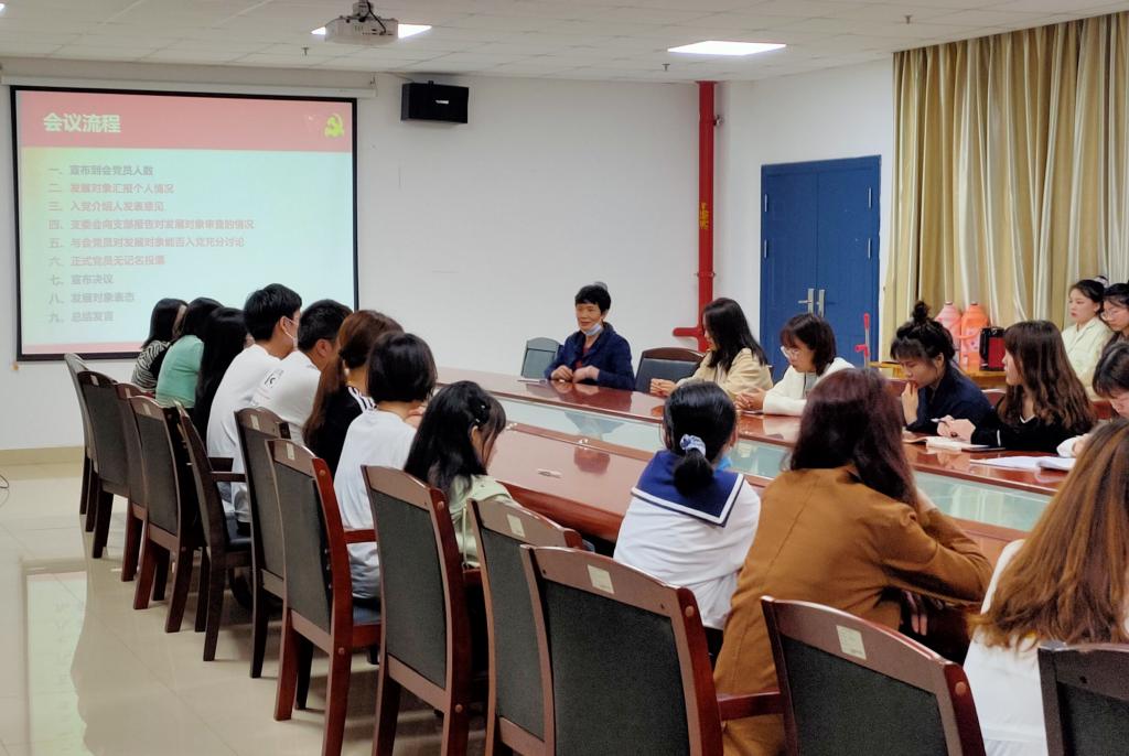 会议伊始,由支部副书记魏林宣布到会党员人数以及有表决权的正式党员人数。胡曼婷等22名发展对象从思想政治方面、工作学习和生活等方面情况向党组织汇报,他们的入党介绍人分别发表意见。支委会向支部报告了对发展对象的综合审查情况,与会党员对发展对象能否入党进行了充分讨论,最后正式党员进行无记名投票,胡曼婷等22名发展对象获得赞成票数超过应到有表决权正式党员的半数以上,支部大会通过了接收胡曼婷等22名发展对象为预备党员的决议。张响珍老师强调,新发展的党员同志要多思考自己存在的不足之处,在日常生活中发挥好党员的模范带头作用,时刻铭记自己的党员身份。