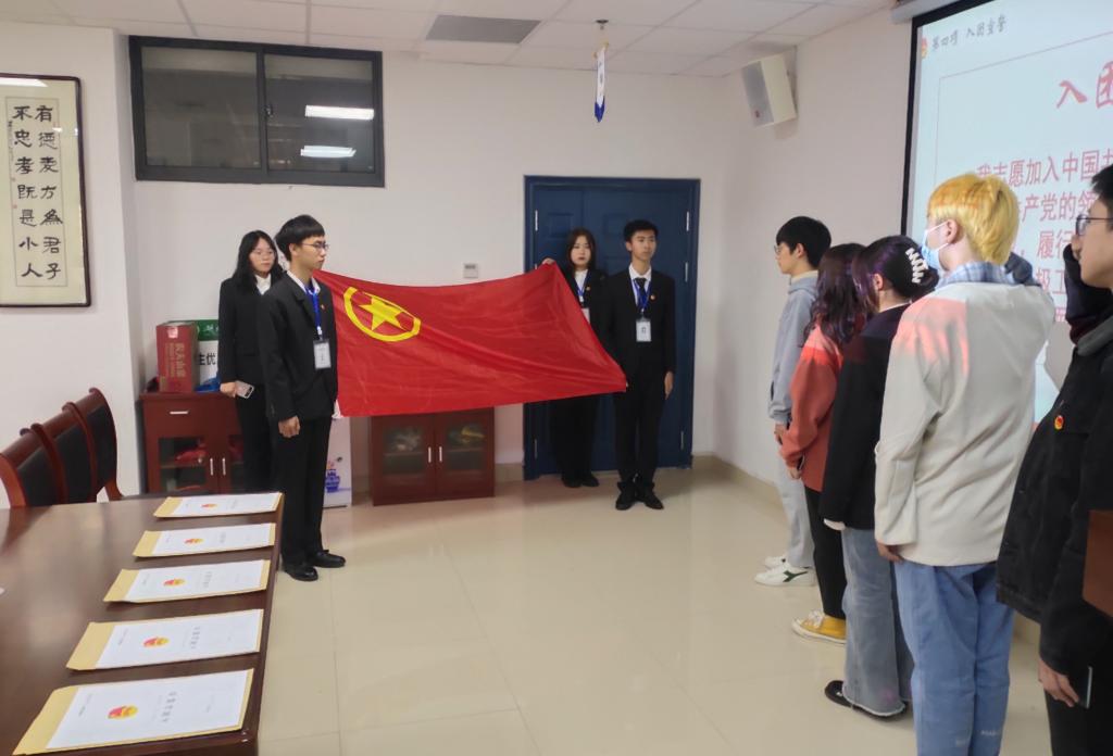在入团仪式上,由主持人罗浩文同学宣读了2021年度新发展团员名单。由团委副书记田博文为新团员一一授予团徽,并进行庄严的入团宣誓。组织部干事任梓睿在入团仪式上宣读《团章》,使得新团员明确共青团员的权利与义务。随后,陈锦龙作为新团员代表就如何成为更好的团员发表了自己的看法;徐婷婷作为优秀团员代表在入团仪式上发言,表示希望新发展团员在今后的学习生活中坚守初心、不断取得进步。