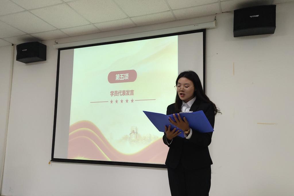 在小组培养成果展示环节中,吴坤营和胡智豪同学分别做了《为人民服务:党永远不变的宗旨》和《百年大党风华茂,千秋伟业看今朝》主题演讲。李昊和余梦婷分别做了《论持久战》和《忠诚与背叛——还你一个真实的红岩》读书分享。他们的精彩表现充分展示了小组“思源致远,学思践悟”的培养理念。山高水长,行则将至。何钰滢作为学员代表发言,讲述了这一年在小组学习中的经历与收获。