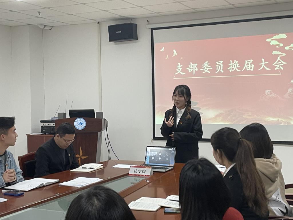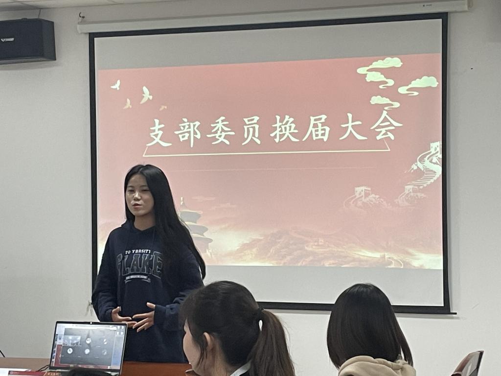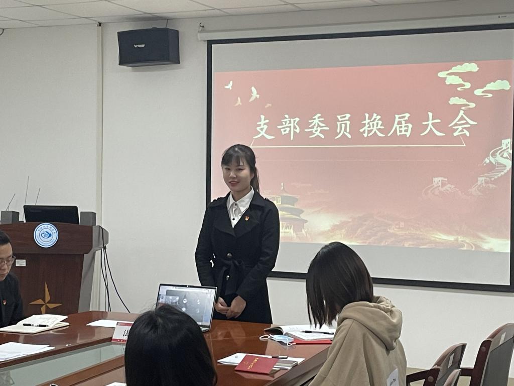 会议伊始,盛文军同志对支委会成员的工作表示肯定,并感谢支委会成员的付出与努力,并代表支部委员会对一年来支部建设工作的进步与不足两方面进行总结。通过党员自荐和民主推选的方式,黄采卉、刘蜀婷等党员同志参与竞选新一届支部委员会成员,候选人针对自己的竞选优势、竞选原因、工作设想等作了汇报。