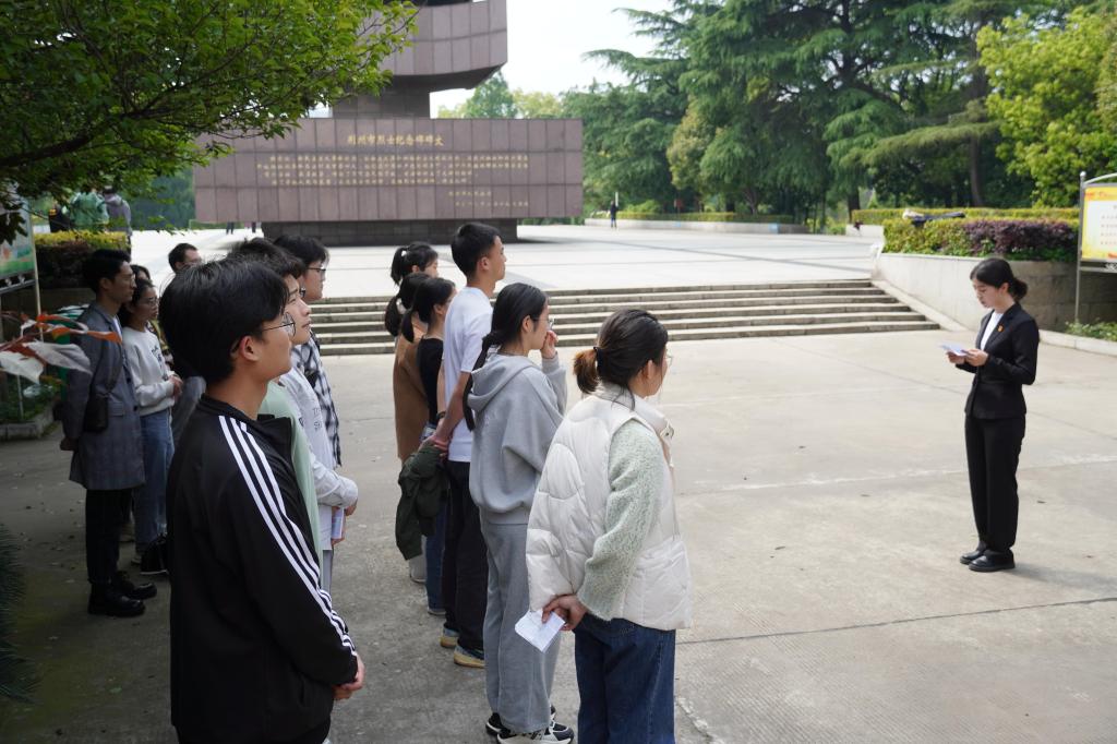 活动伊始,全体党员在庄严肃穆的烈士纪念碑前奏唱国歌,由骆语杰同志带领全体党员重温入党誓词,前行不忘初心。紧接着,由冯其莉同志向在场的全体师生介绍荆州烈士的英勇事迹,她带领大家重温了那段战火纷飞的光荣岁月。“天地英雄气,千秋尚凛然。缅怀,为铭记,更为传承。”冯其莉同志慷慨激昂地讲述到。
