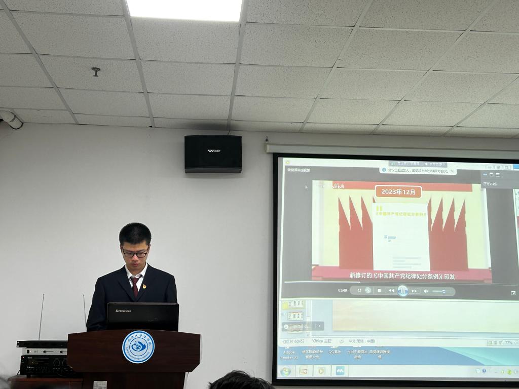 大会第二项由雷礼、廖小凡同志进行微党课授课,雷礼、廖小凡先后带领大家一起学习了中国共产党纪律处分条例,深刻分析了党的纪律是党的生命线,是保持党先进性和纯洁性的重要保障。作为党员,学习党纪、遵守党纪,是我们时刻保持作为先锋队的先进性、纯洁性,忠于社会主义事业的重要法宝。