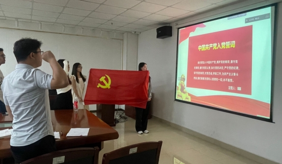 最后,全体党员面对党旗庄严宣誓,支部书记盛文军强调员工党员要以良好的精神状态和坚定的理想信念投入到学习和工作中,谨记自己的身份,严格要求自己,起到模范带头的作用。