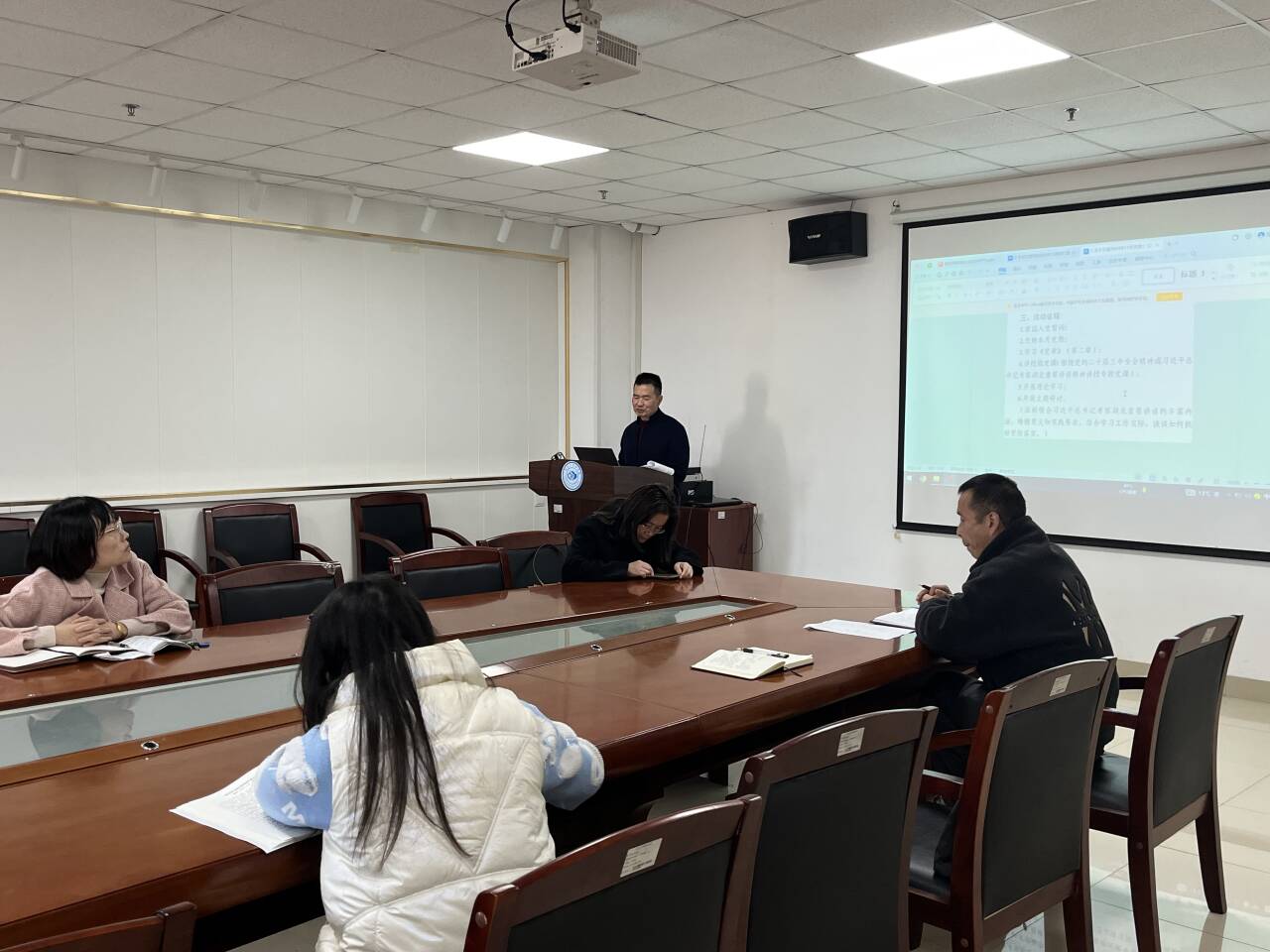 11月28日下午,公司党委在文科楼1110会议室举行理论学习中心组暨教职工政治理论集中学习,集中学习由公司党委书记周胜美主持。