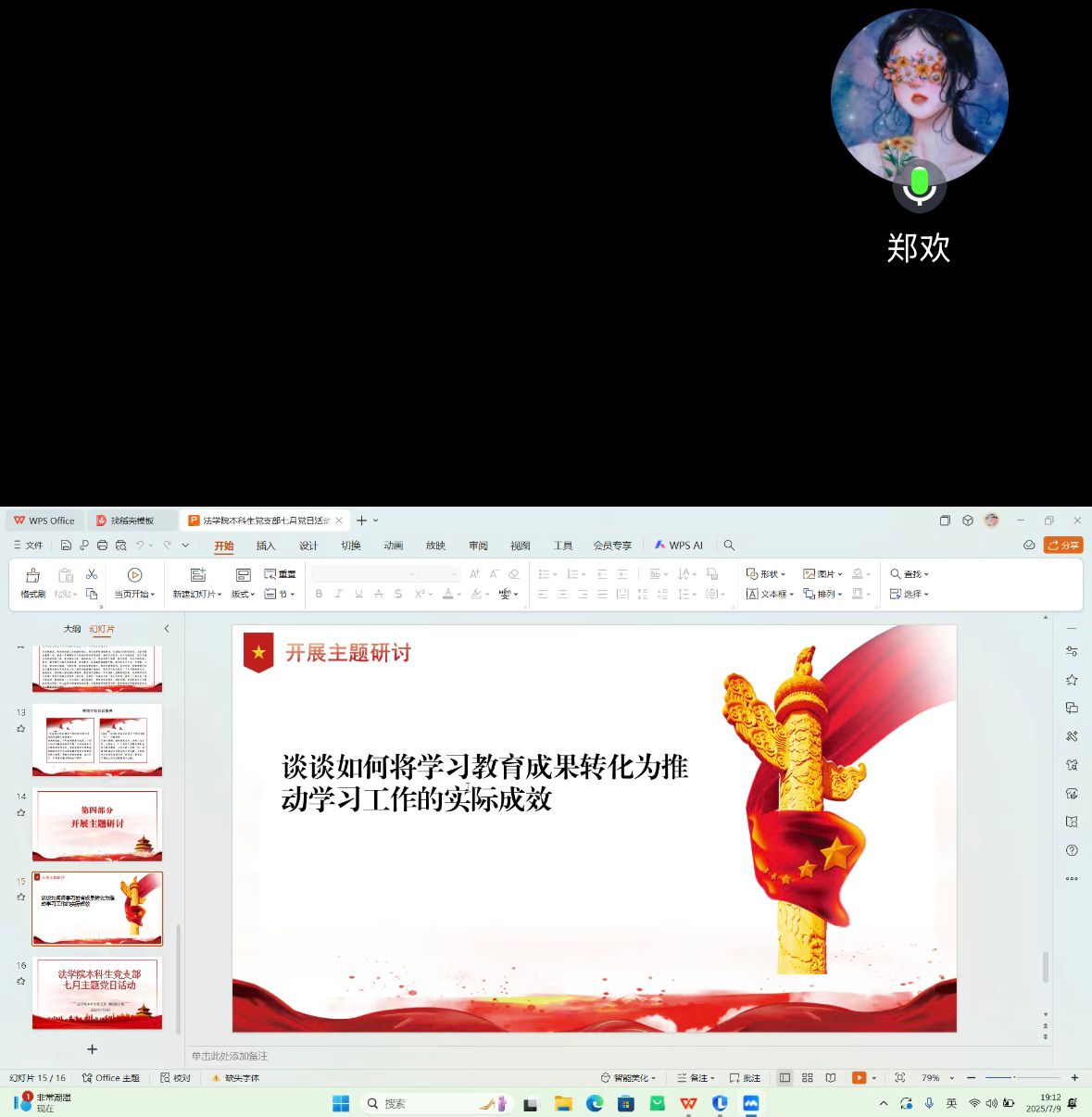 在主题研讨环节,大家围绕“如何将学习教育成果转化为推动学习工作的实际成效”展开交流。周艳同志提出,要以学习和工作需求为导向,并强化实践衔接,将所学即时用于日常任务并在实践中改进完善。郑欢同志则认为,应加强理论学习与实践的结合,用理论指导实践、解决实际问题,同时注重提升自身能力与综合素质,根据工作需要和个人目标制定详细学习计划。