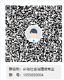 请加入(扫二维码)AI与社会治理微专业QQ群号:1055650004