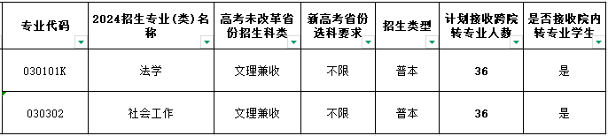 1、拟转入法学专业员工,2024-2025学年第一学期必修课绩点不得低于3.0;拟转入社会工作专业员工,2024-2025学年第一学期必修课绩点不得低于2.0