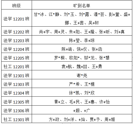 经核查,2024年5月22日第一大节课,甘冰冰等43名同学无故旷课,造成不良影响。具体名单如下: