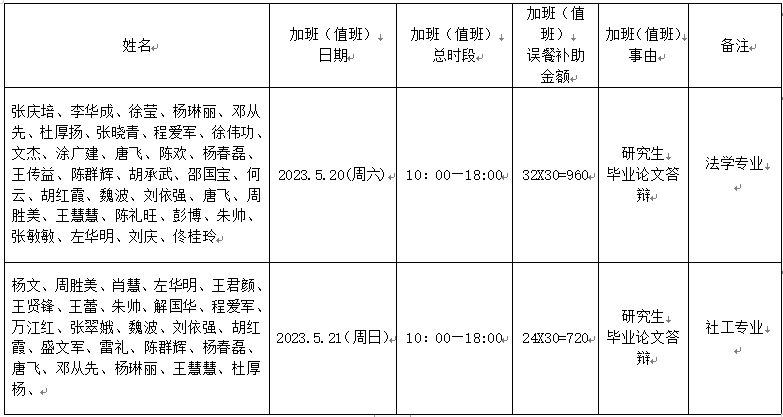 根据《beat365官网中文加班(值班)误餐补助管理办法(试行)》(长大校发【2019】83号)文件规定,现对公司5月20-21日2023届硕士学位论文答辩加班(值班)误餐情况进行公示,如对加班(值班)误餐情况有异议,公示期为三天(5月22日-5月24日),请在公示期内向院办反映。