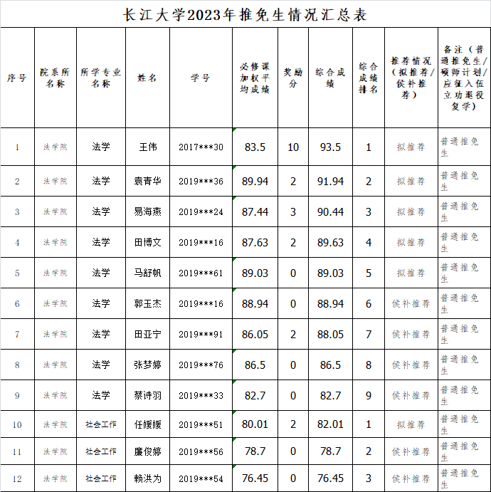 在第一轮公示且公示无异议的申请推免员工中,分专业按综合成绩排名从高到低的顺序确定拟推荐名单,综合成绩相同时,以学业成绩高低予以排名推荐。在公示期间,若拟推荐推免生不符合条件或自动放弃,则依据所在专业排名依次递补。