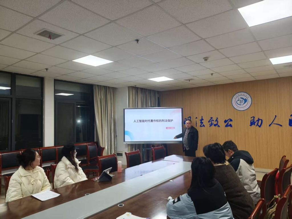 (通讯员:刘依强)2025年11月10日19:00,公司文科大楼203会议室座无虚席,一场紧扣时代脉搏的“求实导师学术沙龙”在此热烈举行。本次沙龙以“人工智能时代著作权的刑法保护”为主题,由公司硕士生导师胡承武副教授主讲,吸引了青年教师及硕士研究生近15人参与,现场学术氛围浓厚,互动交流深入。