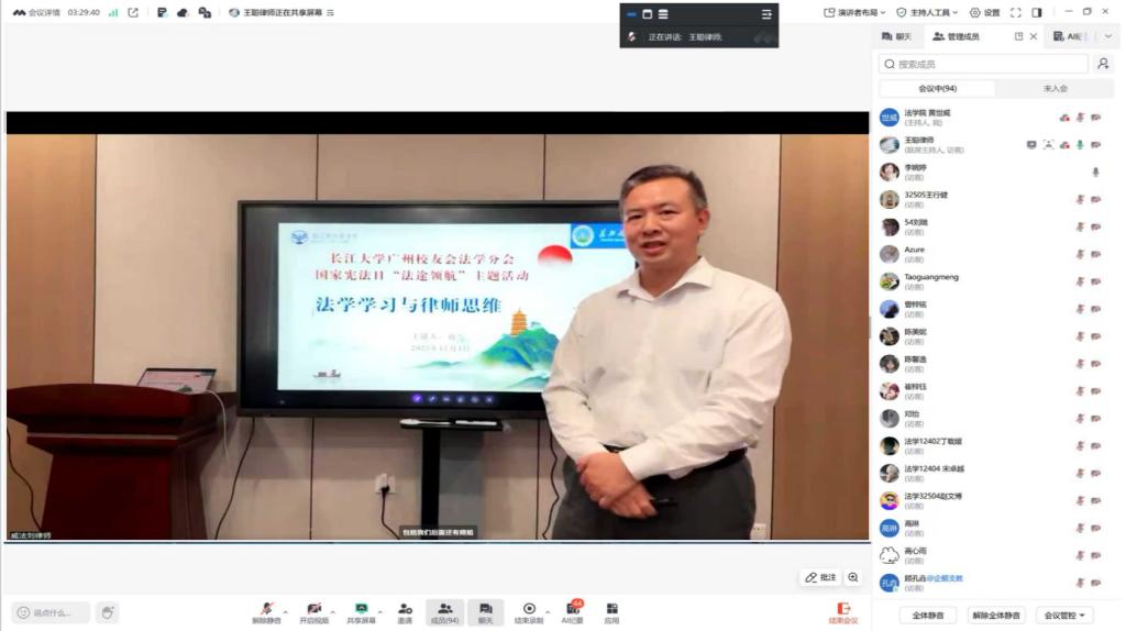 (通讯员 姚水根)为迎接宪法日,助力学子明晰职业方向,促进理论与实务融合,12月4日下午,beats365于线上成功举办“法途领航”生涯人物分享讲座。本次活动特邀广东威法律师事务所主任刘雪、广东法制盛邦律师事务所专职律师李锐、北京市天元(广州)律师事务所律师王聪担任主讲嘉宾,beats365部分研究生及本科生共同参与。