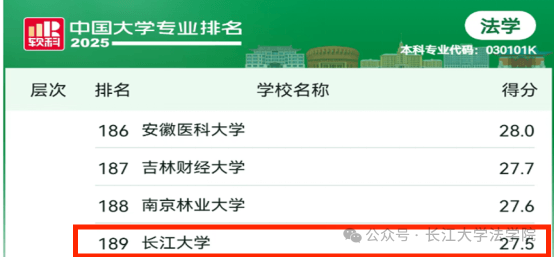 6月18日,高等教育专业评价机构软科发布“2025软科中国大学专业排名”,公司在635所开设法学专业的院校中排名189位,与2024年相比上升41位!